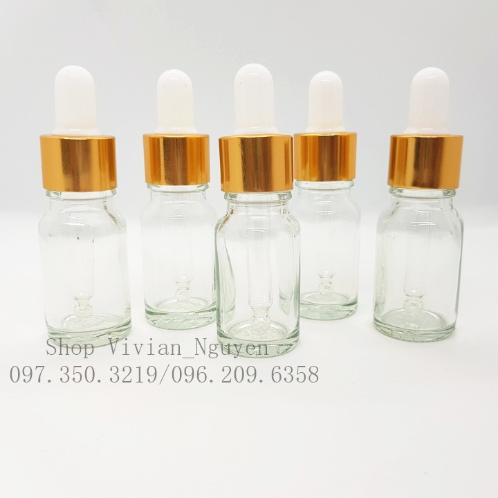Combo 10 Chai đựng Tinh Dầu, Serum 10ml, Thuỷ Tinh Trong suốt, Nắp Bóp Nhôm Vàng