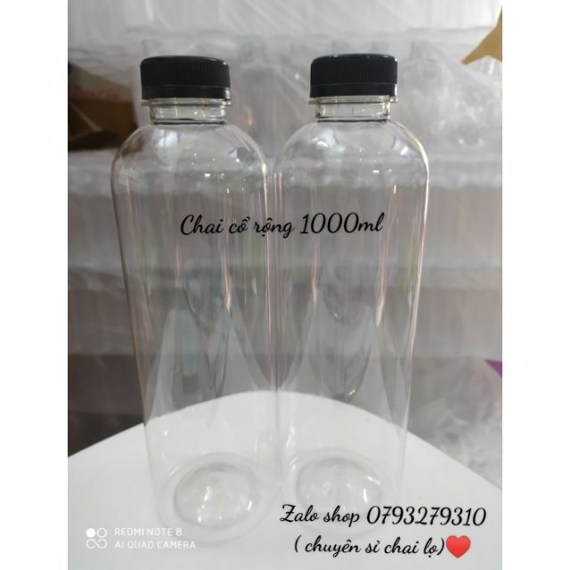 Combo 10 chai nhựa 1 lít cổ rộng dày dặn trong suốt kèm nắp