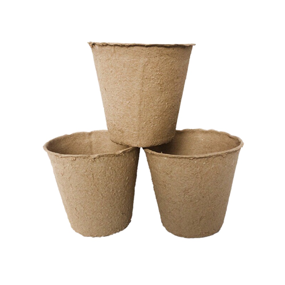 - Chất liệu của chậu cây là giấy và than bùn, v.v.