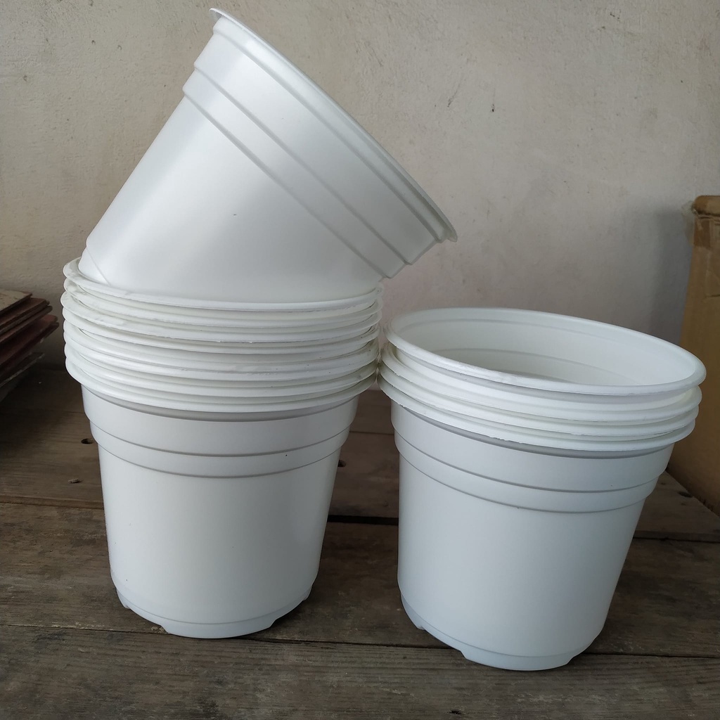 Chậu có giá thành rẻ, trọng lượng nhẹ, dùng trồng cây 1-2 năm. Chậu nhựa trắng thích hợp trồng các cây hoa cảnh chơi Tết giúp tiết kiệm chi phí đồng thời tính thẩm mỹ rất cao