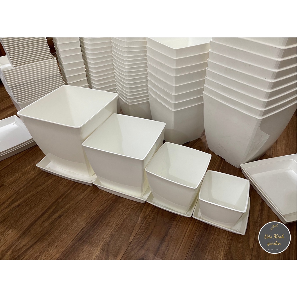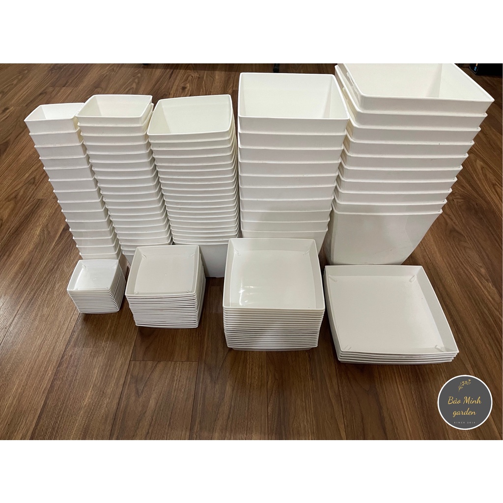 Combo gồm 10 chậu size : 12x12cm và 10 Đĩa lót 16x16cm