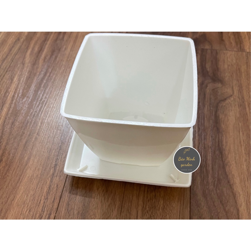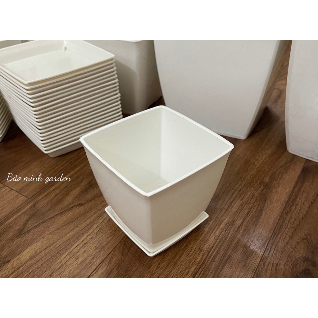 Combo 10 chậu nhựa vuông 12x12cm kèm đĩa lót trồng hoa cây cảnh văn phòng hàng cao cấp của CDT plastis