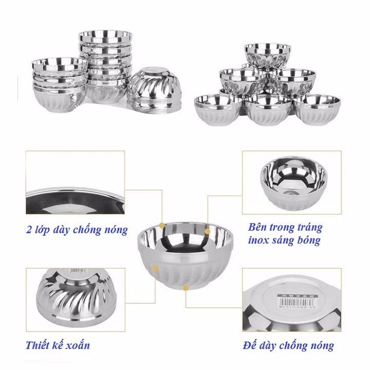 Giới thiệu Combo 10 Chén Inox Cách Nhiệt 2 Lớp Cao Cấp