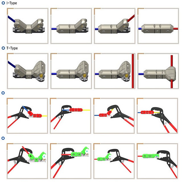 Thi công đấu nối mà không cần bóc lớp cách điện của dây dẫn, đây chính là ưu điểm vượt trội so với đấu nối thông thường ngăn chặn nguy cơ bị giật điện, thậm chí có thể đấu nối nóng mà không cần ngắt điện. Đây chính là phương pháp đấu nối phổ biến nhất trên toàn thế giới hiện nay.