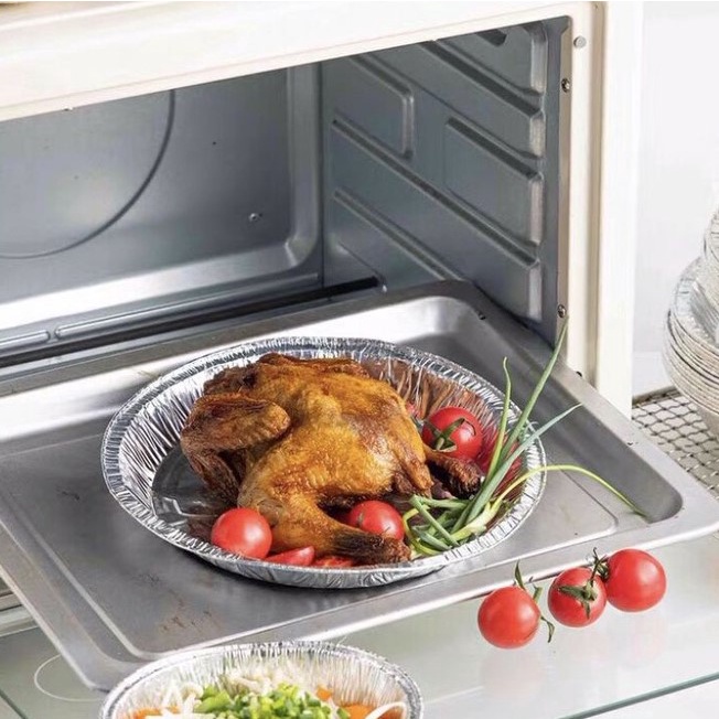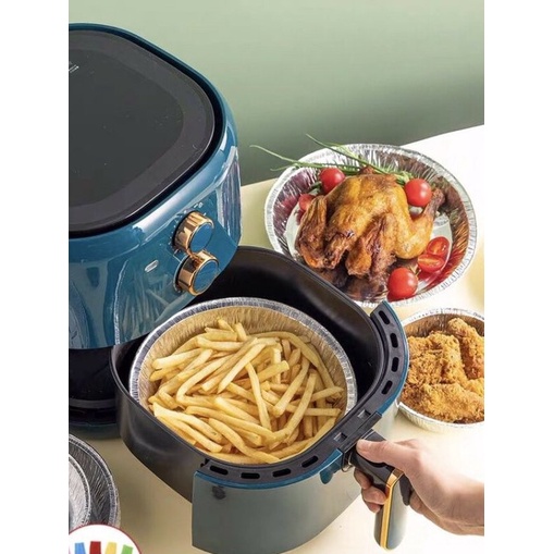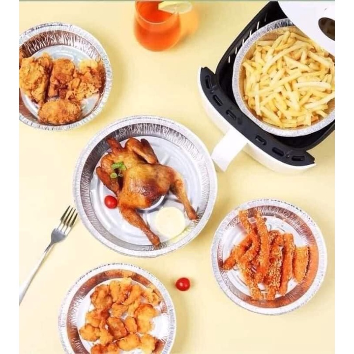 Combo 10 chiếc khay giấy bạc lót nồi chiên không dầu, đựng thực phẩm dùng trong lò nướng, lò vi sóng đường kính 19cmKhay giấy bạc để nướng hàu, nướng bánh, làm thạch... trong nồi chiên không dầu hoặc lò nướng, vỉ nướng. Khay nướng giúp chị em mình loại bỏ thao tác bóc tách món ăn khỏi nồi chiên, đặc biệt là bánh pizza hay bánh bông lan sẽ giữ nguyên không bị dính.