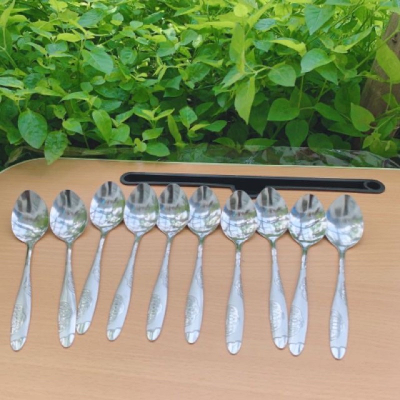 Nhà cửa & Đời sống > Bộ đồ bàn ăn > Dĩa || combo 10 chiếc thìa, muỗng inox cán khắc vân hoaCòn hàng
