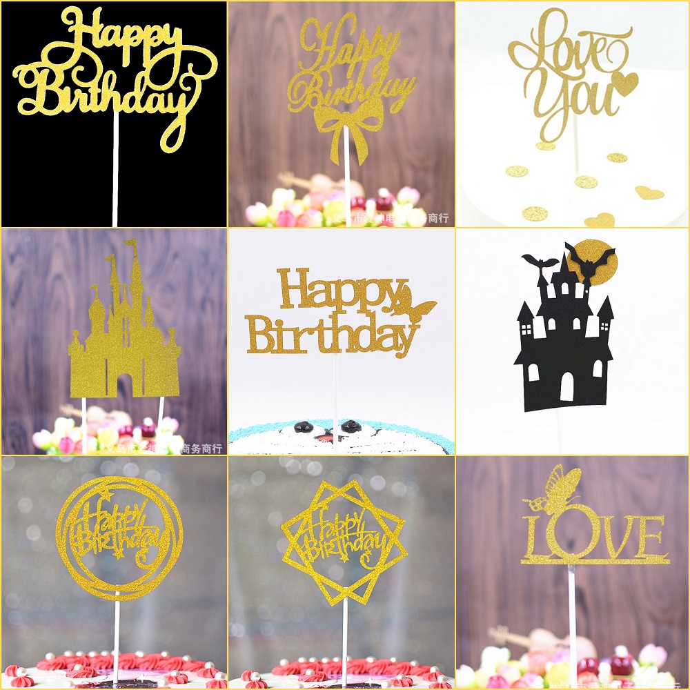 Nhà cửa & Đời sống > Dụng cụ nhà bếp > Dụng cụ nướng & trang trí bánh || Combo 10 chiếc topper giấy nhũ trang trí bánh sinh nhật -15Cm, hình giấy nhũ trang trí bánh kemCòn hàng
