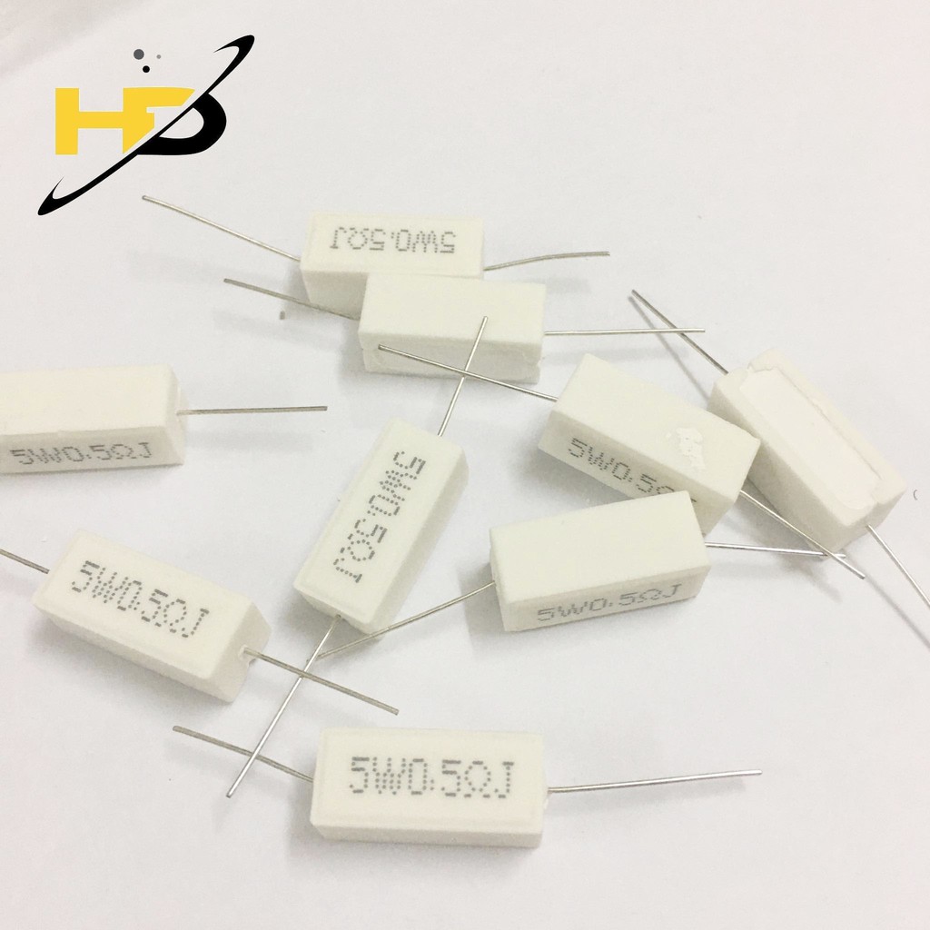 Combo 10 Con Điện Trở Sứ 5W 0.5R 5% Dạng Nằm, Linh Kiện Siêu Chất Lượng