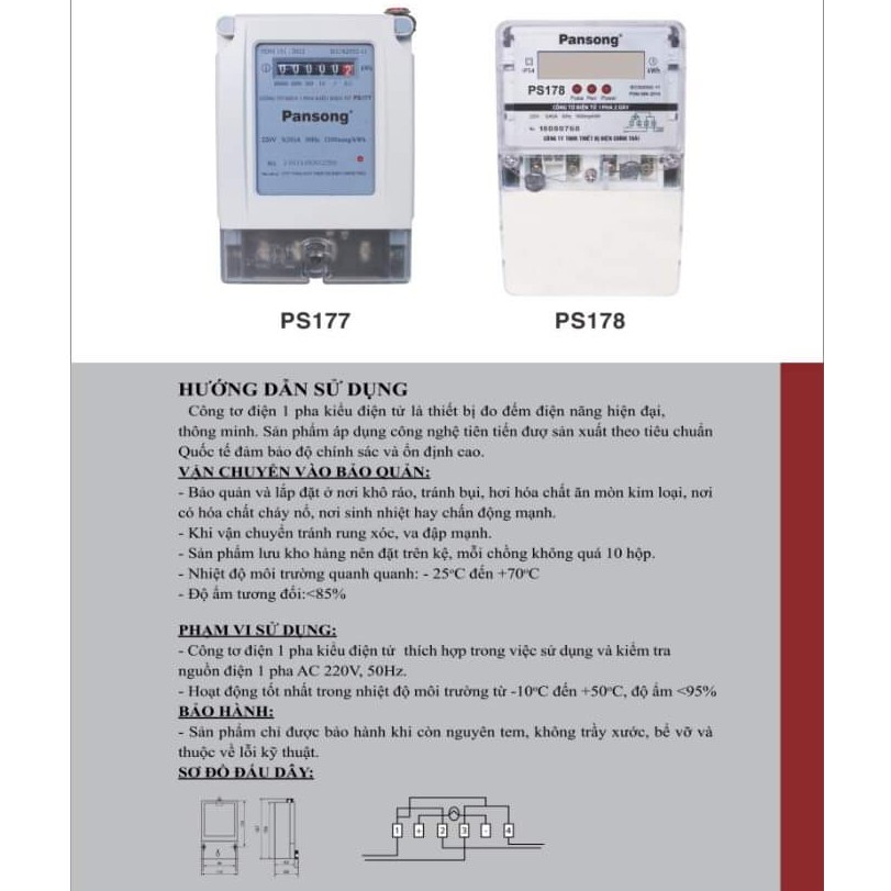 [COMBO] 10 Công Tơ Điện (Đồng Hồ Điện) PANSONG 1 Pha 2 Dây Kiểu Điện Tử PS178 5(40)ACông tơ cơ điện tử Chính Thái đạt tiêu chuẩn hàng Việt nam chất lượng cao.