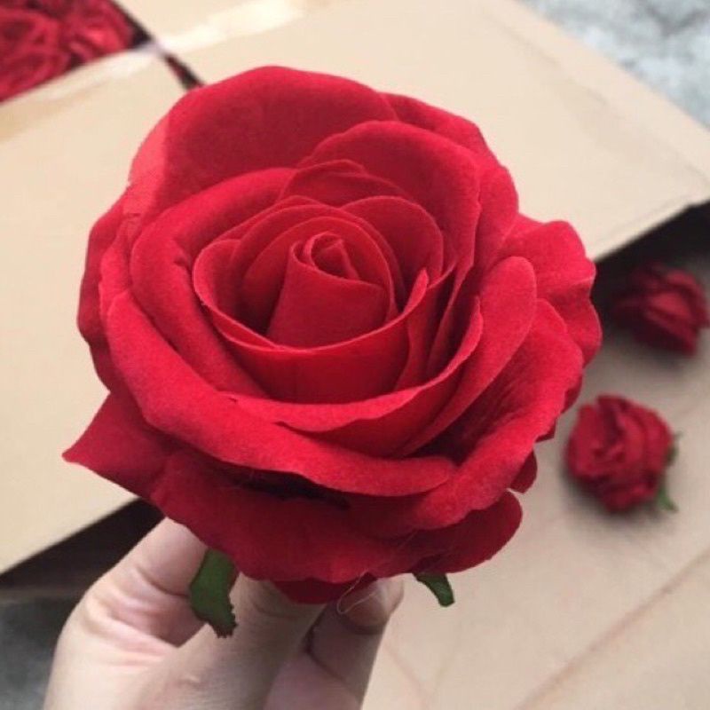 - Đầu bông Hồng Nhung xoăn đường kính 9cm, hồng nhung tròn đk 11cm bông to chất liệu Nhung chuẩn sịn loại 1 không bay màu bụi như hàng rẻ tiền- Chất liệu : Vải Nhung