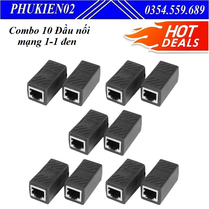 Combo 10 Đầu nối cáp mạng LAN RJ45 màu đen - Đầu nối mạng RJ45, Cầu nối mạng RJ45 đơn giản, dễ sử dụng