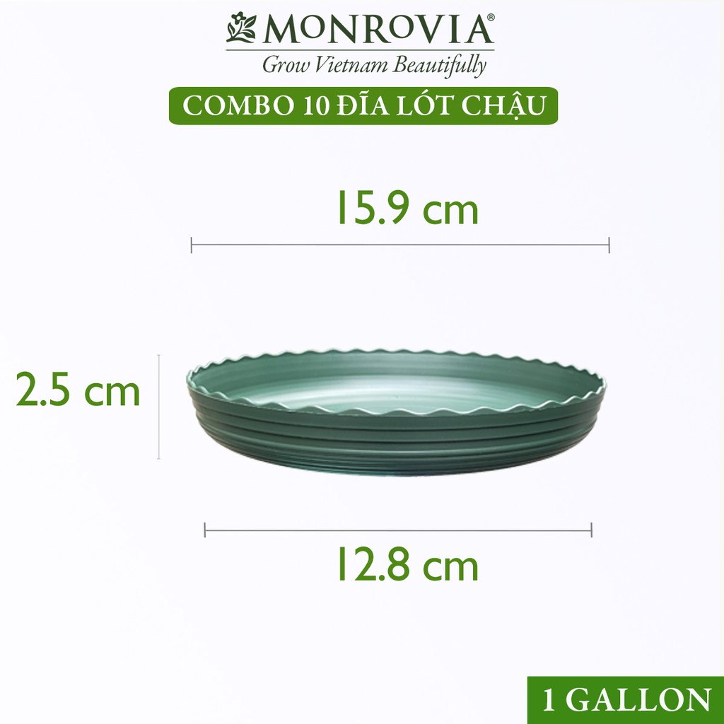 Nhà cửa & Đời sống > Làm vườn > Chậu cây || Combo 10 Đĩa lót chậu nhựa trồng cây MONROVIA 1gl, để bàn, treo ban công, treo tường, ngoài trời, sân vườn, chính hãngCòn hàng