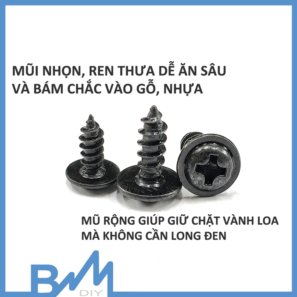 Combo 10 đinh vít mũ rộng bắt loa màu đen sơn tĩnh điện - vít đầu dù - vít bake