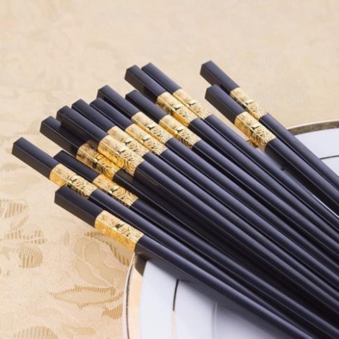 Nhà cửa & Đời sống > Bộ đồ bàn ăn > Bộ dao kéo || Combo 10 đôi đũa hợp kim khảm vàng chống mốc chống trơnCòn hàng