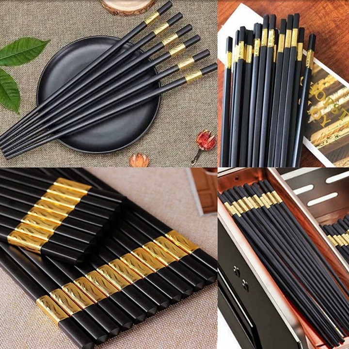 Nhà cửa & Đời sống > Bộ đồ bàn ăn > Dĩa || Combo 10 đôi đũa mạ vàng cao cấp kiểu dáng sang trọngCòn hàng