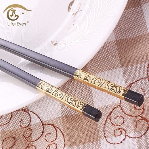 - Đũa hợp kim mạ vàng, 1 hộp 10 đôi đũa hợp kim mạ vàng chịu được nhiệt độ lên đến 260 độ C