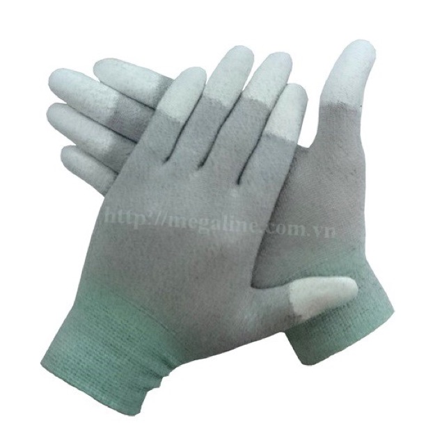 - Chất liệu: sợi 100% Polyester phủ PU ở các ngón tay chống tĩnh điện