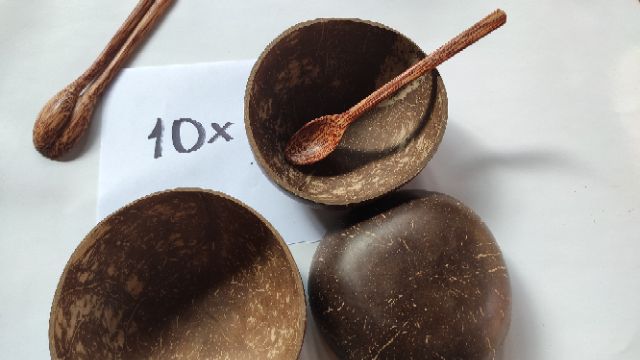 Nhà cửa & Đời sống > Bộ đồ bàn ăn > Tô || Combo 10 Gáo chén và thìa gỗ dừa | Gáo chén | Muỗng gỗ dừaCòn hàng