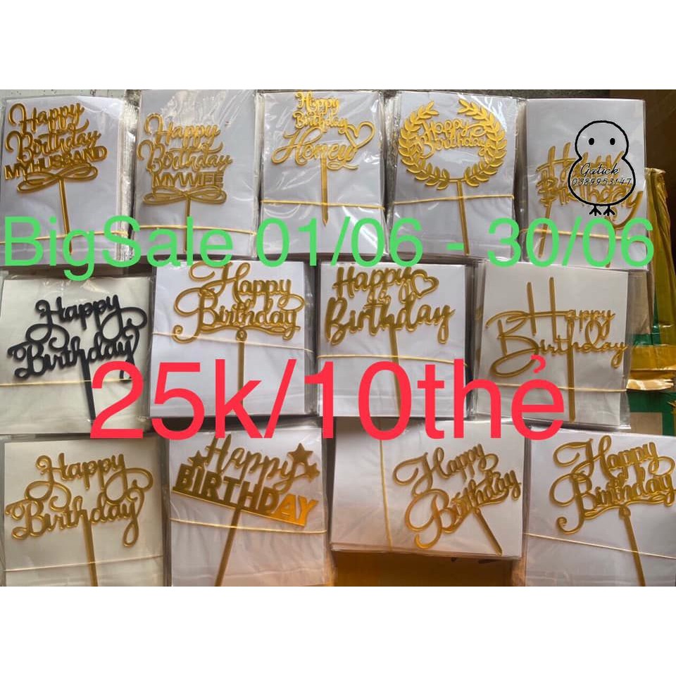 Giới thiệu Combo 10 hình cắm mica happy birthday trang trí bánh sinh nhật, Topper cake