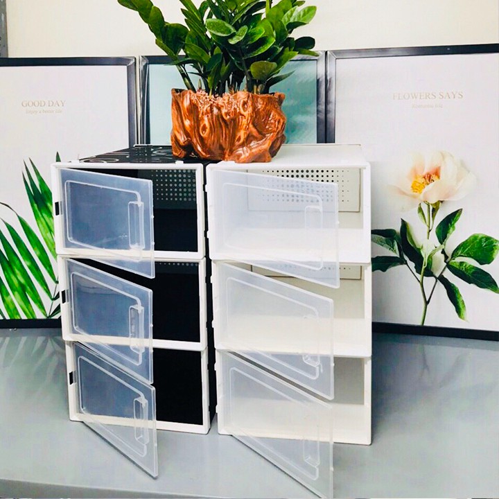 COMBO 10 Hộp Để Giày Dép Nắp Nhựa Cửa Ngang, Tủ Giày Lắp Ráp Thông Minh Cao Cấp