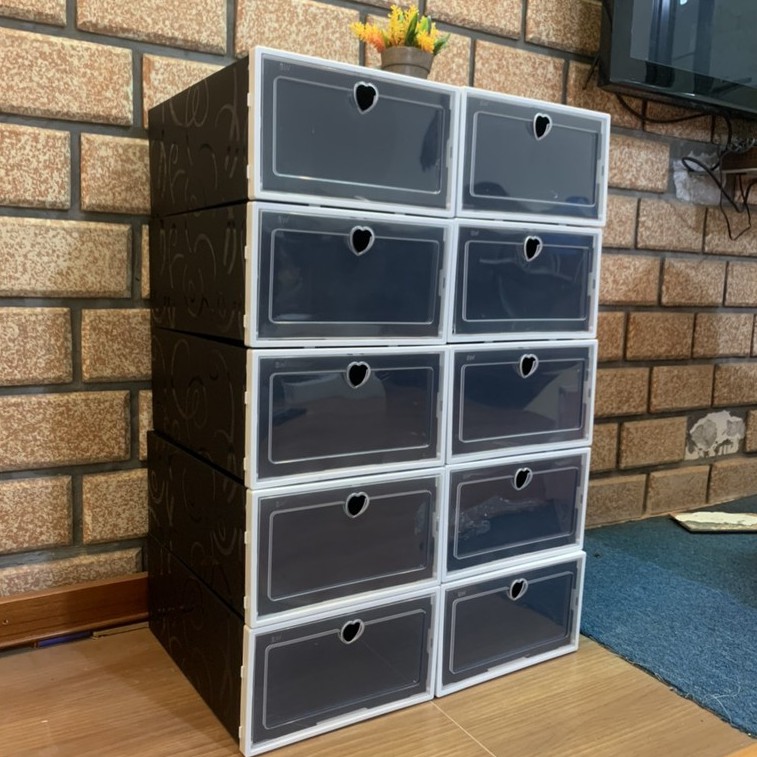 Nhà cửa & Đời sống > Sắp xếp nhà cửa > Kệ giày, hộp giày || Combo 10 Hộp Đựng Giày Dép Nắp Nhựa Cứng Màu Đen, Hộp Giày nắp Ráp Thông Minh( Mua 1 Tặng 1)Còn hàng