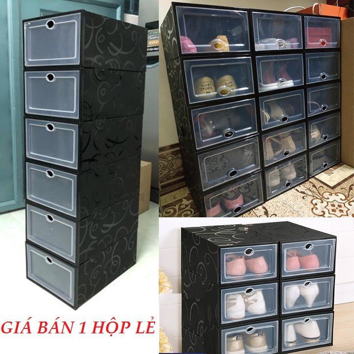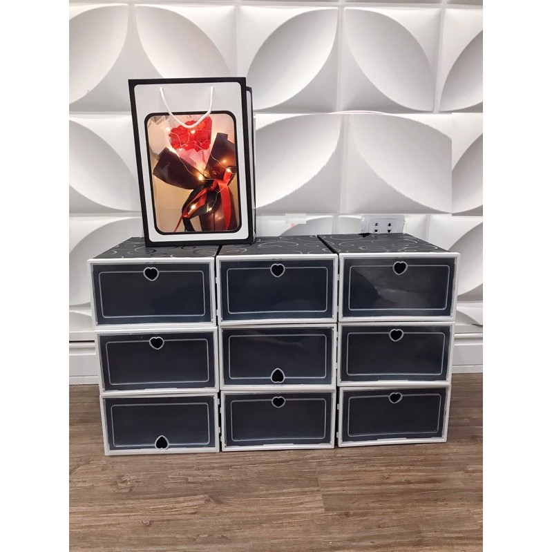 Combo 10 Hộp Đựng Giày Dép, Tủ Lắp Ráp Bảo Quản Giày Nắp Nhựa Cứng Size Lớn ( Tặng Chống Ẩm )