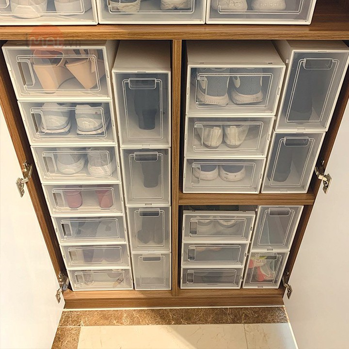 ❤️ Hộp Đựng Giày Nhựa Cứng Trong Suốt Cao Cấp, Kệ Tủ Đựng Giày Cửa Ngang Lắp Ráp Thông Minh