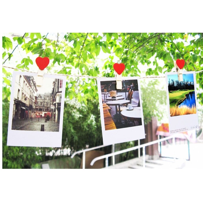 Nhà cửa & Đời sống > Trang trí nhà cửa > Khác || combo 10 kẹp gỗ trái tim màu đỏ và dây thừng phong cách hàn quốcCòn hàng