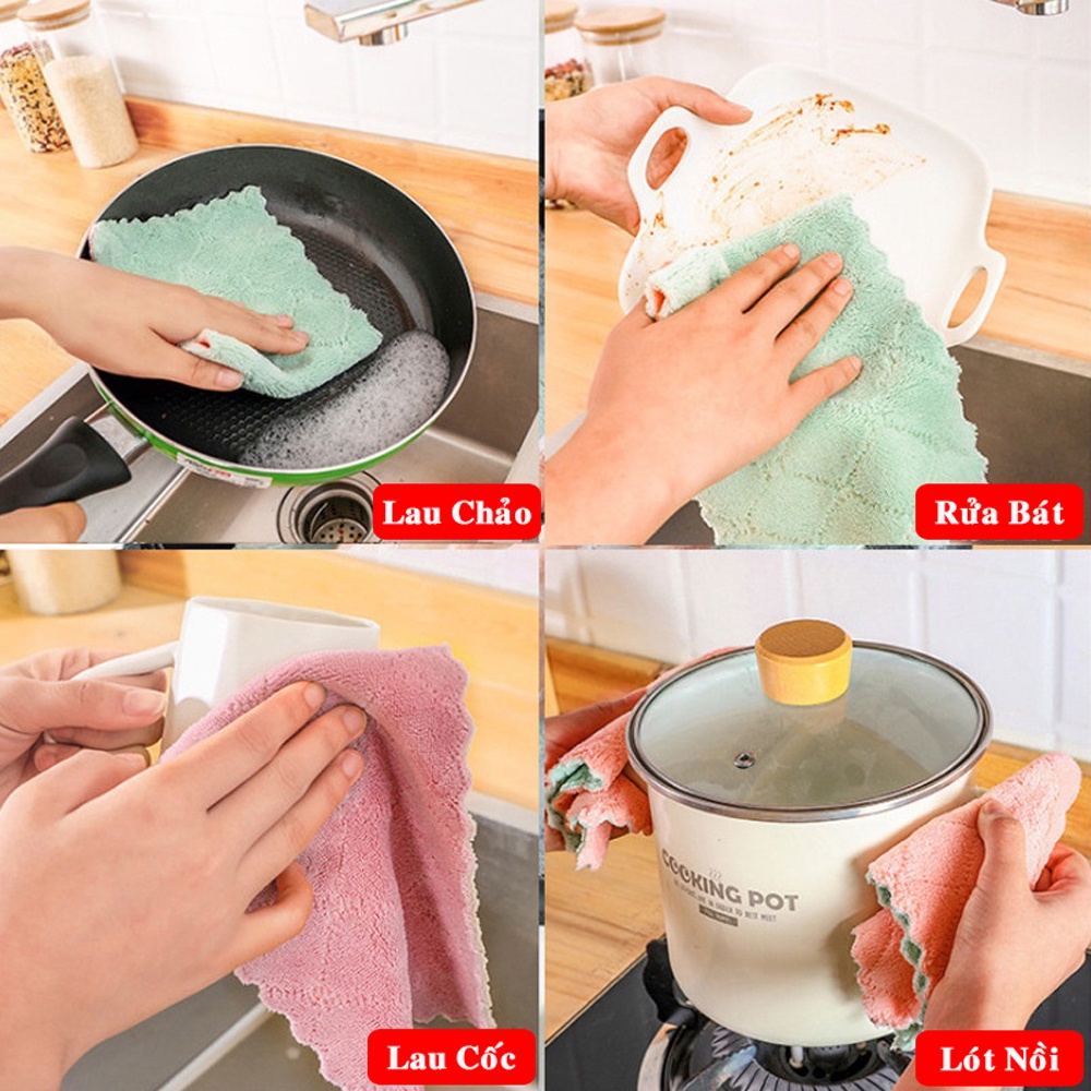 Combo 10 Khăn Lau Bát Đĩa Nhà Bếp Đa Năng Siêu Thấm Nước Chống Dính Dầu Mỡ miDoctor