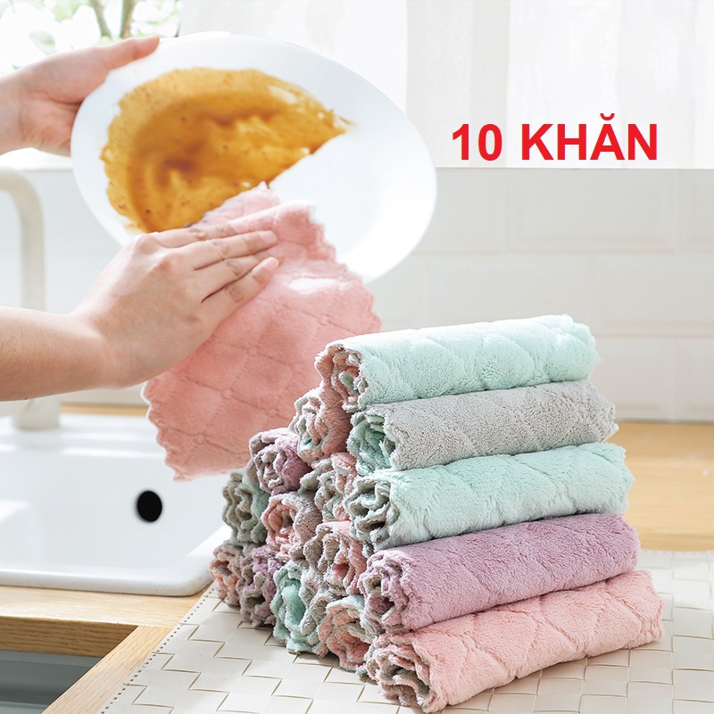 Combo 10 Khăn Lau Bếp Đa Năng 2 Mặt Thấm Hút Tốt Siêu Mềm Tiện Dụng Lau Là Sạch