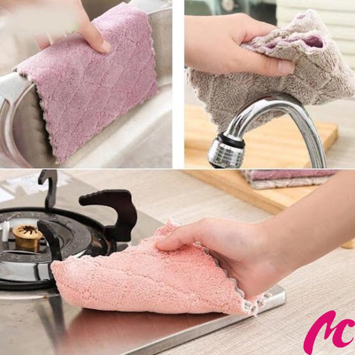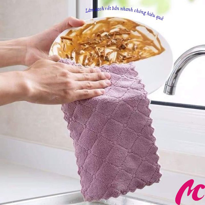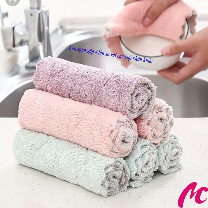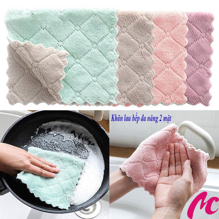 - Khăn Lau Bếp Đa Năng 2 Mặt làm sạch vết bẩn, hiệu quả trong việc lau sạch và làm khô chén dĩa, ly tách,..