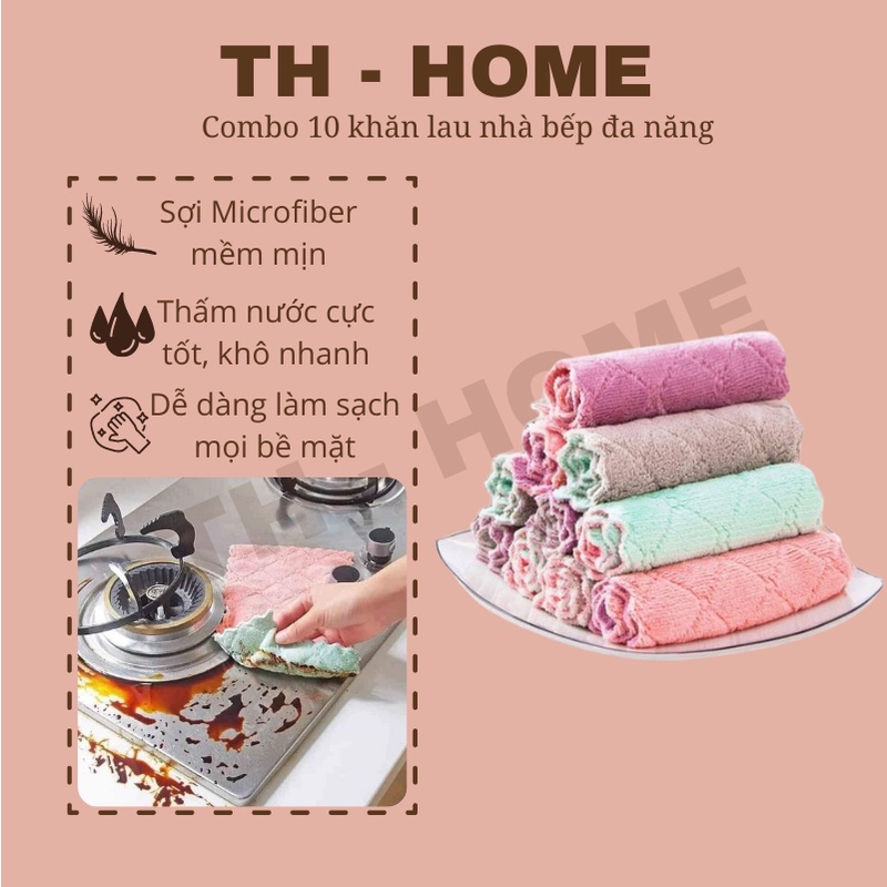 Combo 10 khăn lau đa năng, khăn lau nhà bếp, bát đĩa siêu thấm, khăn lau tay
