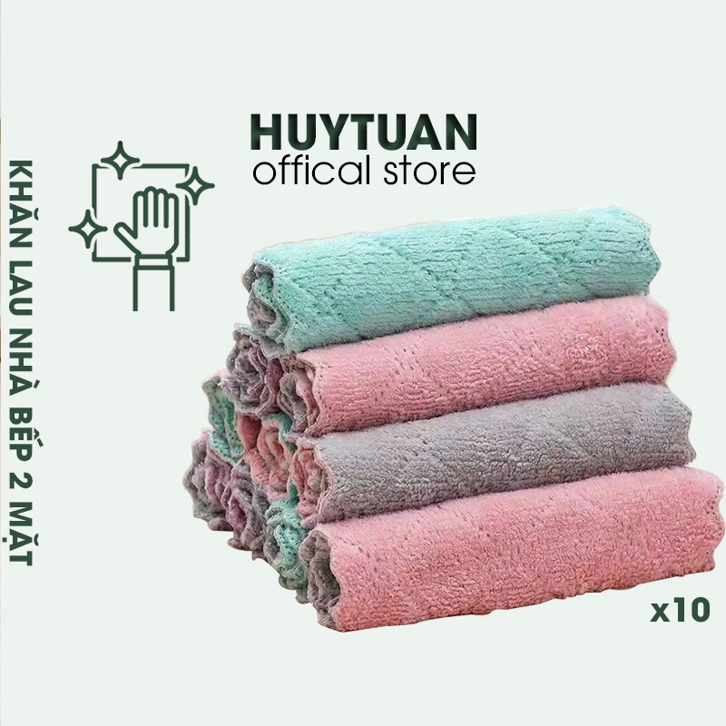 Combo 10 khăn lau tay, lau bát đĩa, rửa chén, lau nhà bếp 2 mặt siêu thấm Boremart