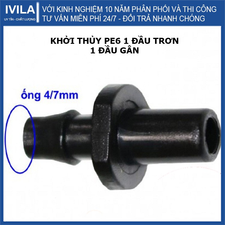 Combo 10 khởi thủy PE6 1 đầu trơn 1 đầu gân - Phụ kiện tưới - Bảo hành 12 tháng