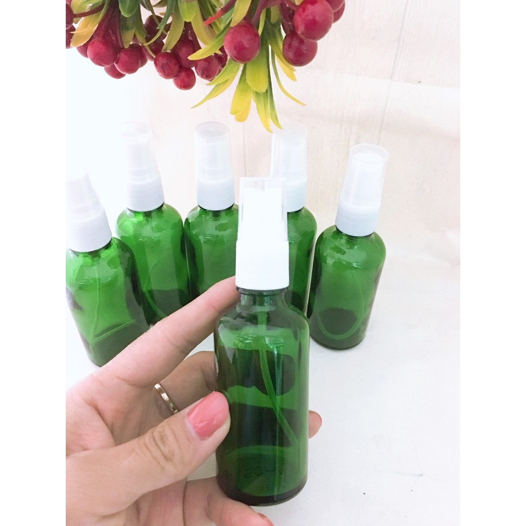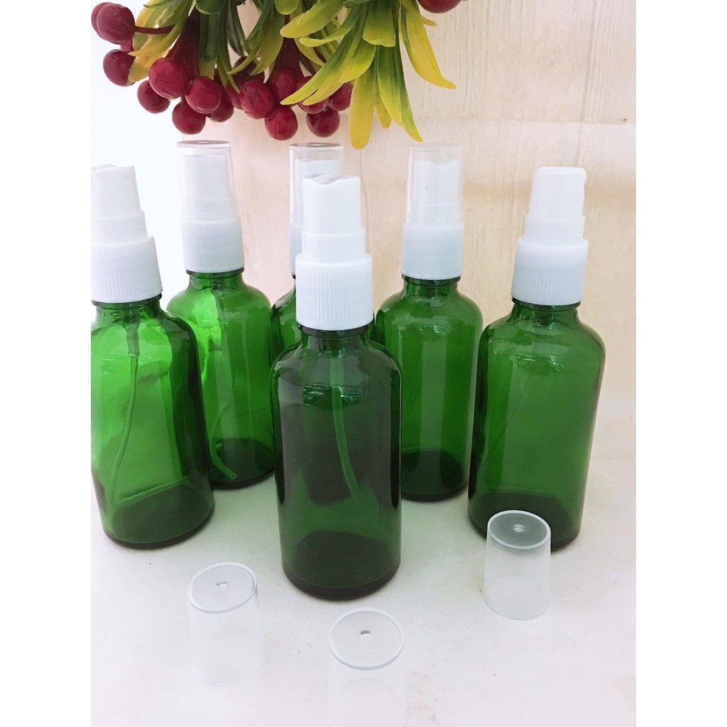 Đặc biệt được nhiều khách hàng ưa chuộng;Chai tinh dầu 50ml màu xanh dạng xịt nắp trắng phù hợp cho tất cả các chủng loại tinh dầu, nước hoa, mẫu thử.