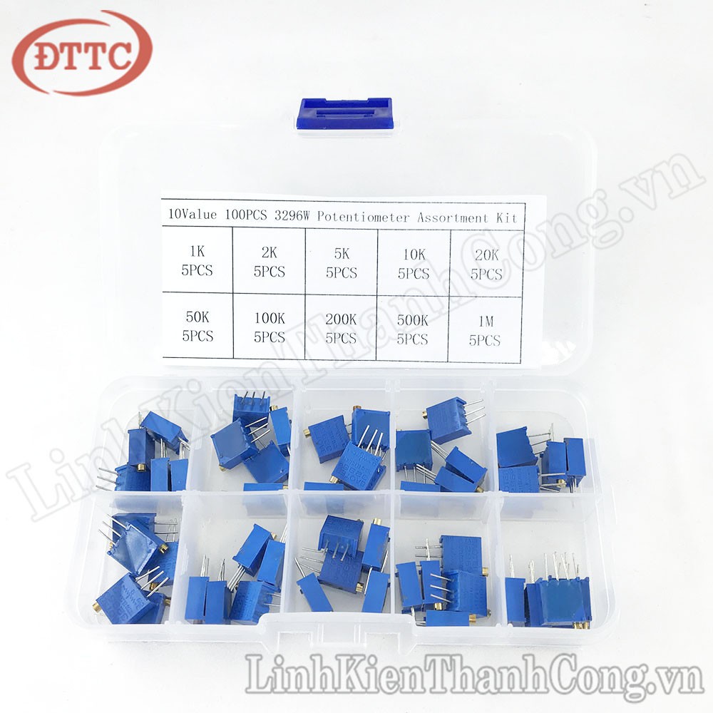- Bao gồm 10 loại biến trở 3296 1K-1M (50 cái)