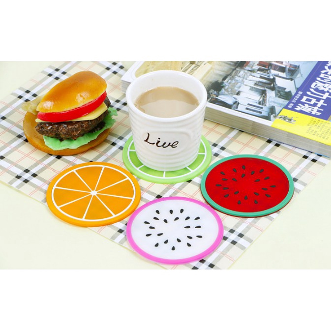 Tấm lót ly chống trượt để bàn hình trái cây- Tấm lót ly để bàn chất liệu Silicon.