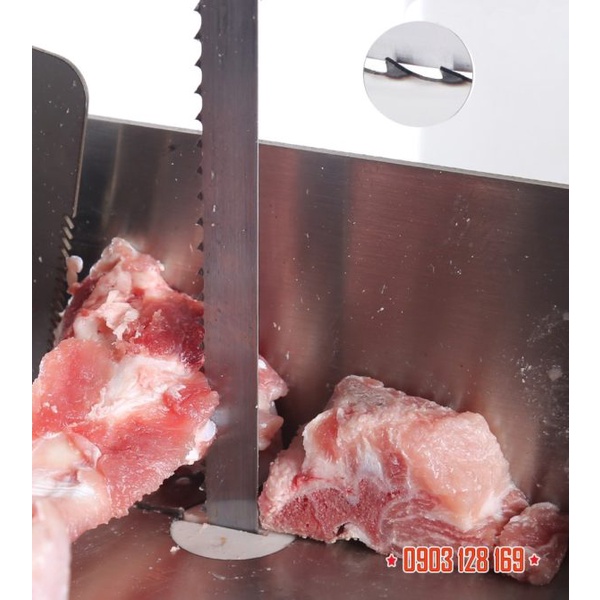 Lưu ý không sử dụng để cưa các sản phẩm thịt có lẫn xương chưa được đông cứng hẳn (sườn tấm, giò heo, cá...) làm giảm tuổi thọ của lưỡi. Tất cả nguyên liệu khi cho vào máy cưa xương cắt thì càng cứng càng tốt để tăng hiệu suất cắt, hạn chế đứt lưỡi cưa.