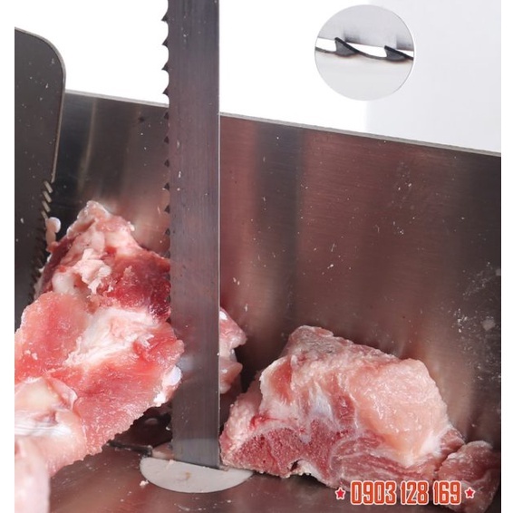 Lưu ý không sử dụng để cưa các sản phẩm thịt có lẫn xương chưa được đông cứng hẳn (sườn tấm, giò heo, cá...) làm giảm tuổi thọ của lưỡi. Tất cả nguyên liệu khi cho vào máy cưa xương cắt thì càng cứng càng tốt để tăng hiệu suất cắt, hạn chế đứt lưỡi cưa.