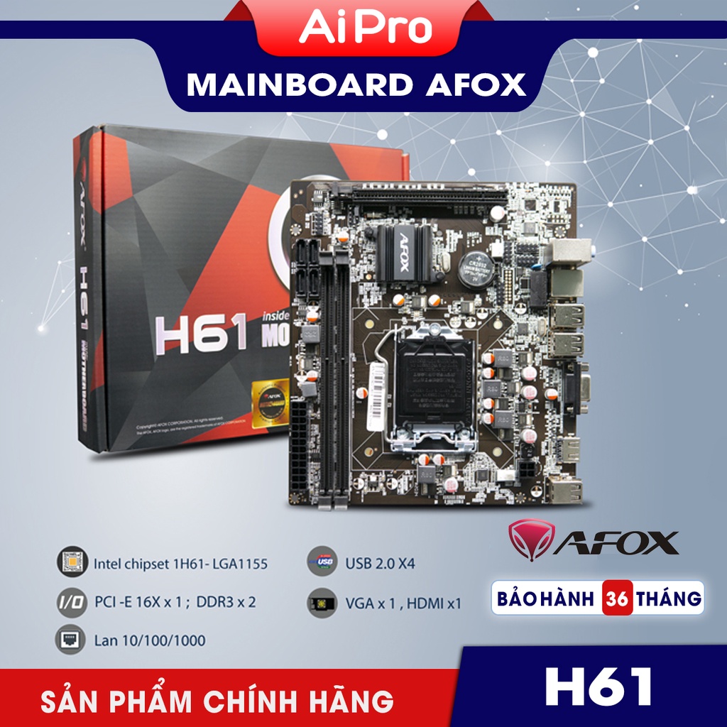 Máy tính & Laptop > Linh Kiện Máy Tính > Mainboard - Bo Mạch Chủ || Combo 10 main H61/H81 các thương hiệu AFOX - GLOWAY - Chính Hãng - BH 24 - 36 ThángCòn hàng