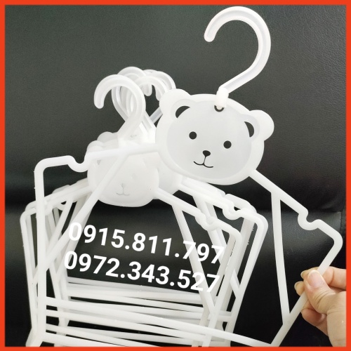 Combo 10 móc bộ trẻ em size 1-3 tuổi, có hình mặt gấu đầu móc xoay 360* linh hoạt dành cho shop trẻ em