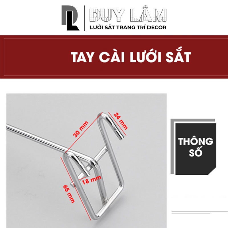 - Tay cài lưới chất liệu inox bền đẹp dùng để trưng bày sản phẩm, phụ kiện, decor tại các cửa hàng, siêu thị, showroom, shop,...