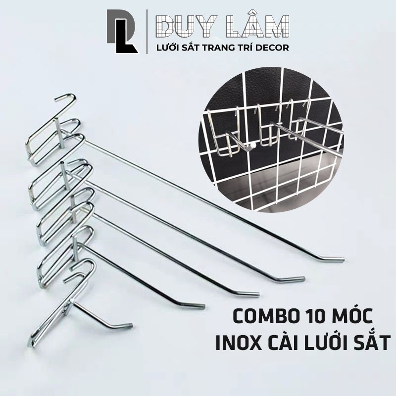 COMBO 10 MÓC CÀI INOX, TAY CÀI TẤM LƯỚI SẮT ĐA NĂNG TREO PHỤ KIỆN ĐIỆN THOẠI, HÀNG HÓA, DECOR TRANG TRÍ