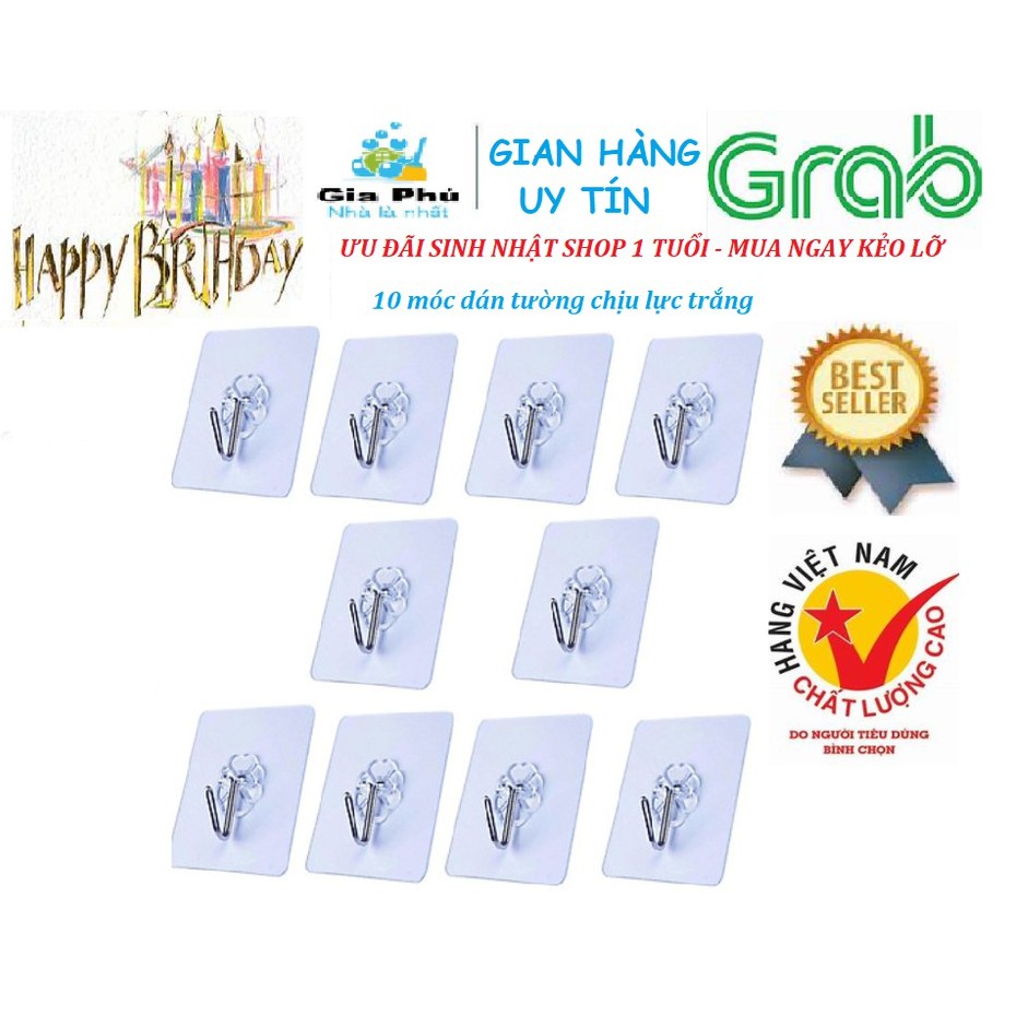 Nhà cửa & Đời sống > Sắp xếp nhà cửa > Móc treo || Combo 10 móc dán tường cường lực trắng Gia PhúCòn hàng