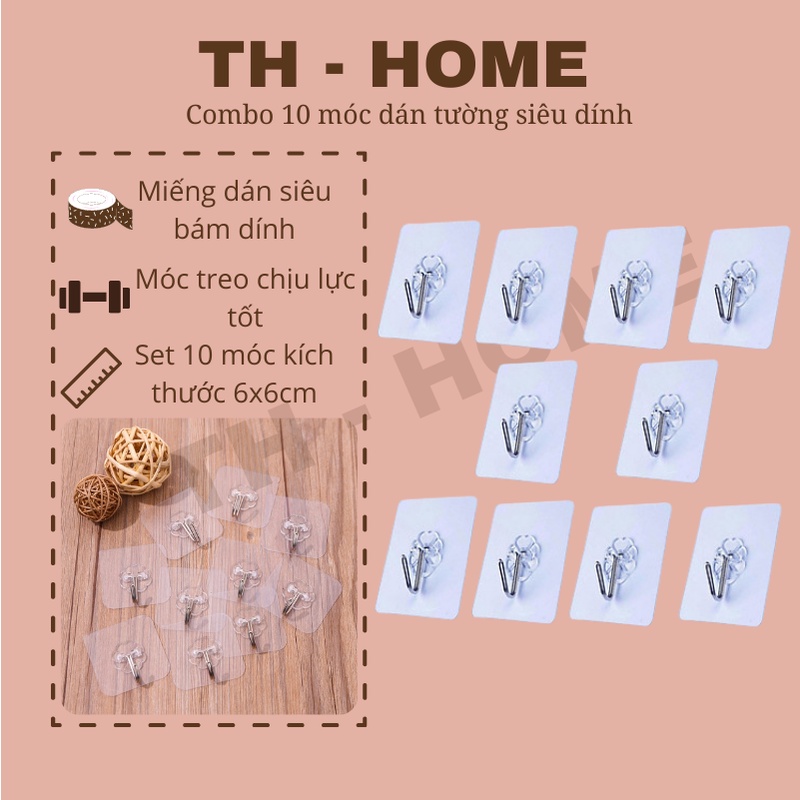 Combo 10 móc dán tường siêu dính - móc dán tường treo quần áo trong suốt chịu lực siêu chắc siêu bền