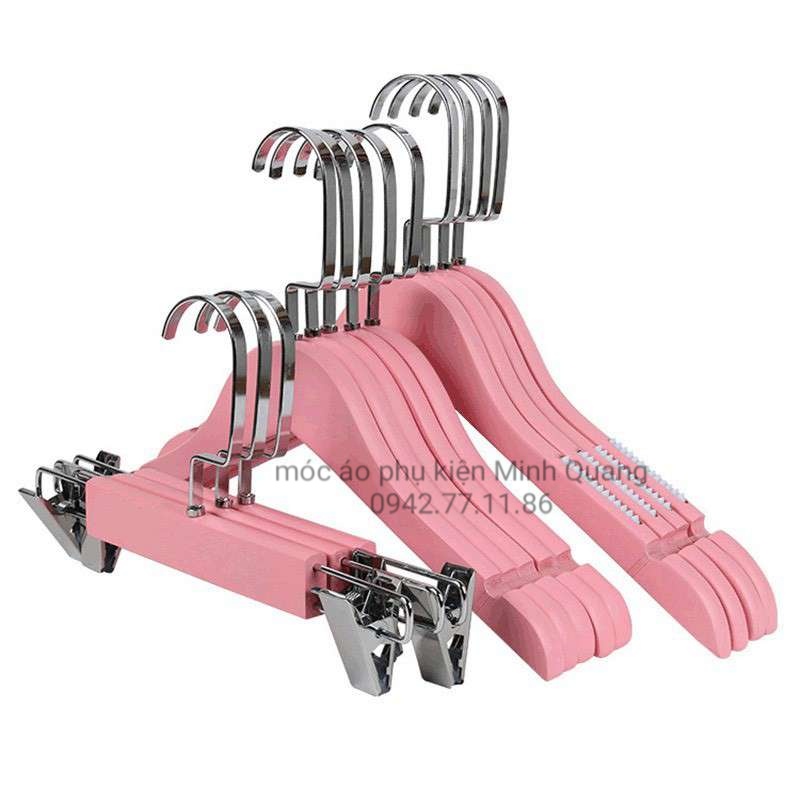 combo 10 móc gỗ hồng, móc treo quần áo bằng gỗ,mắc treo quần áo nữ bằng gỗ màu hồng,có rãnh chống tuột,phụ kiện cho shop