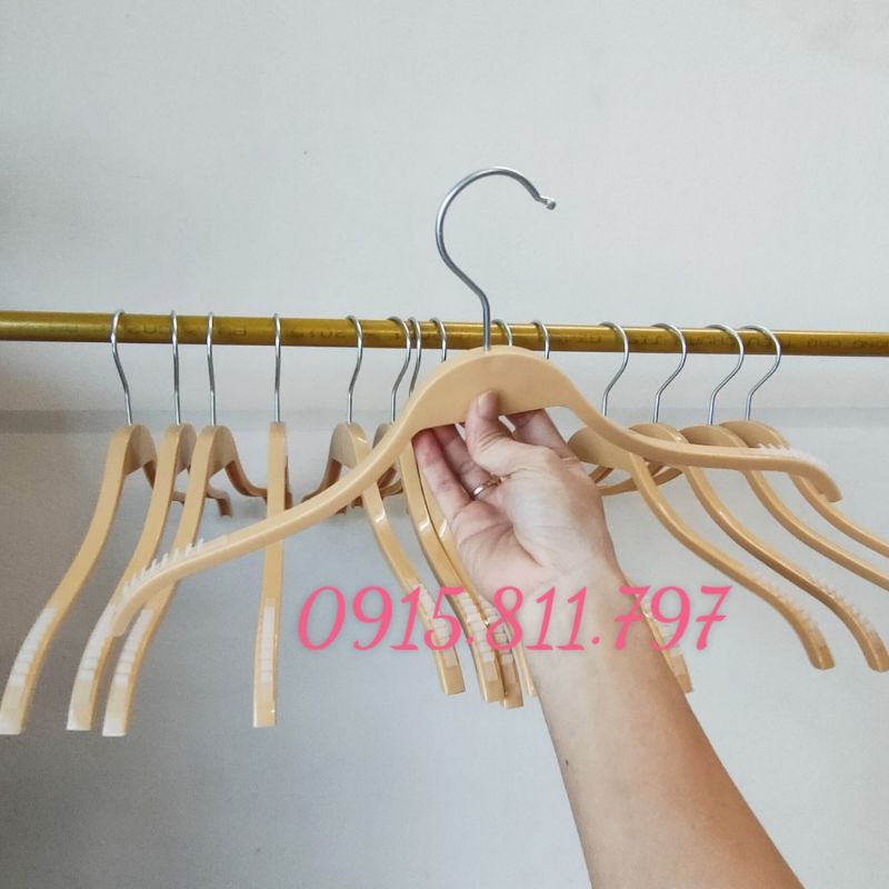 COMBO 10 móc nhựa bọc đệm vai chống trơn tuột siêu dễ thương và bền đẹp dáng gỗ tre, màu vàng, kích thước 39.5cm