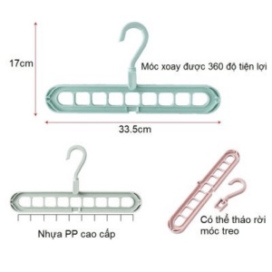 Combo móc treo quần áo 9 lỗ thông minh, xoay 360 độ, giúp tiết kiệm diện tích tủ quần áo