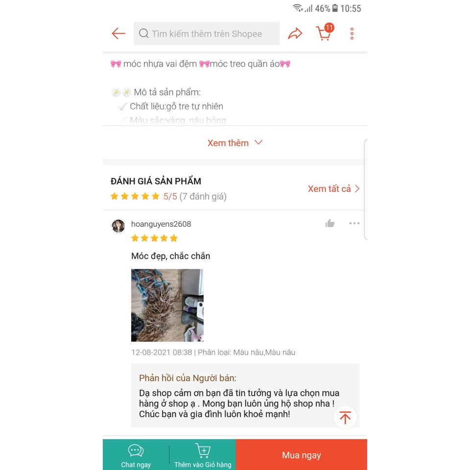 Giới thiệu combo 10 móc treo quần áo bằng gỗ tre vai đệm,đầu móc vuông,móc gỗ tre vai đệm,ngang vai 38cm,móc treo quần áo ngừơi lớn