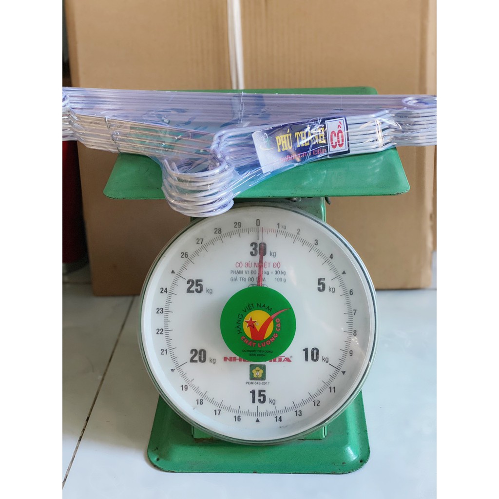 . Sản phẩm xuất xứ Việt Nam, 10 móc cân nặng 280 gram có thể treo trọng lượng quần áo khoảng 2.5 kg mà không bị méo mó, cong mắc áo.